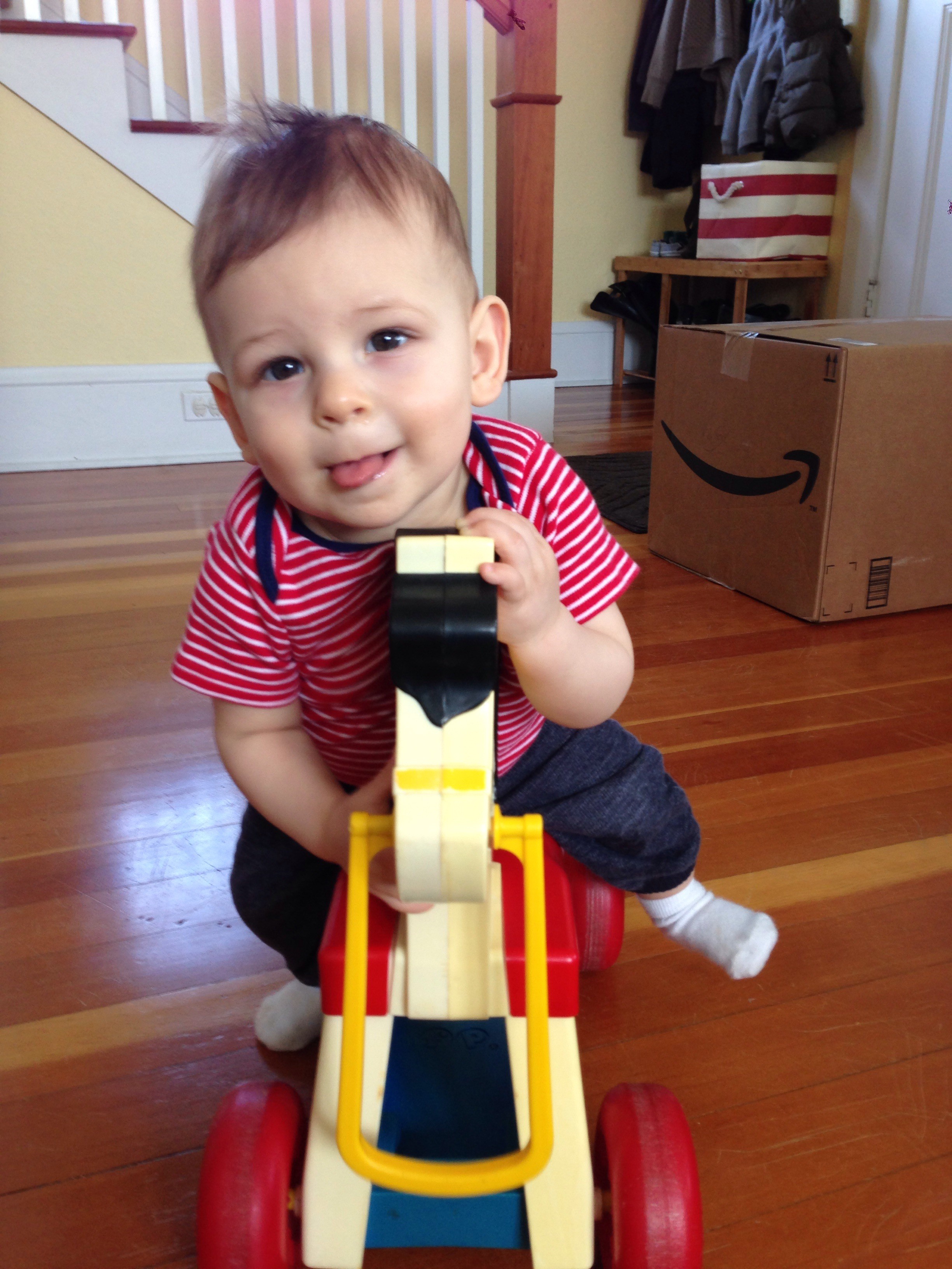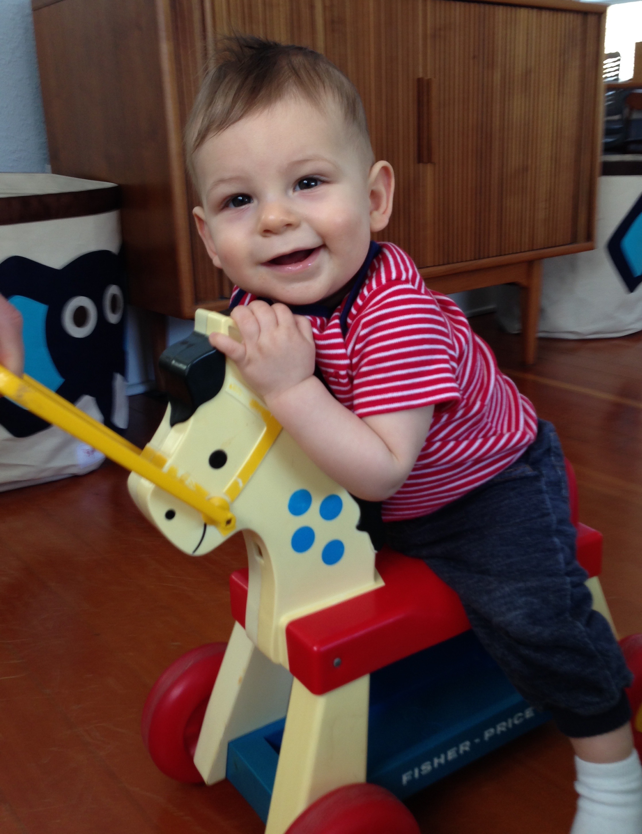 Last week, my parents were cat- sitting for their friends. When I got to tag along, I was smitten by a horse toy their friends had in their house. I liked it so much that Dad found one for me and bought it! I was so excited!! I like to sit on the pony while somebody pulls or pushes me around the room. Mom sing a rhyme called Dapple Gray when she pushes me on the pony, so that’s what my pony is named even though she is neither dapple not gray.